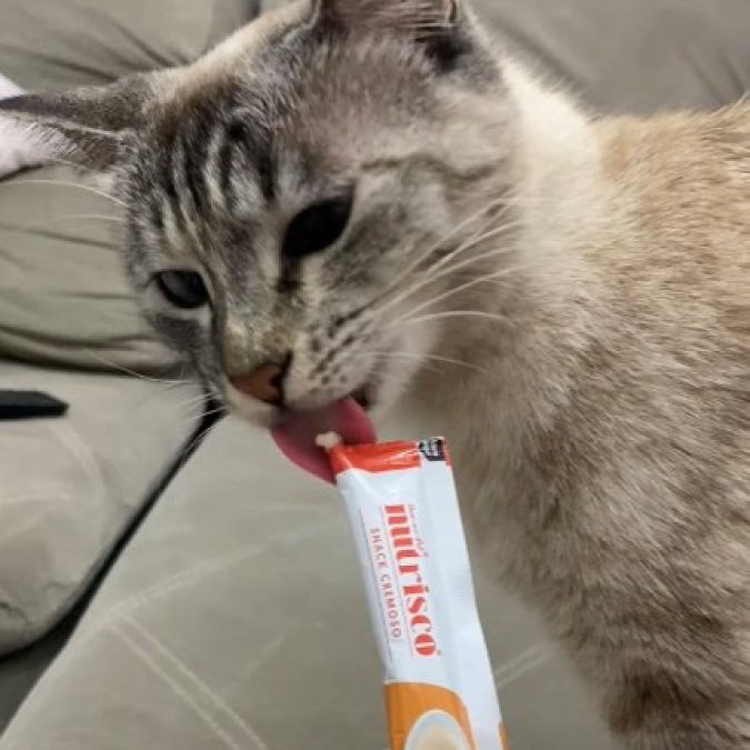 Eu amo os Snacks Nutrisco, pois além de ser nutritivo, cremoso, e ajudar na hidratação, é irresistível. Afinal nós gatinhos temos um paladar exigente.